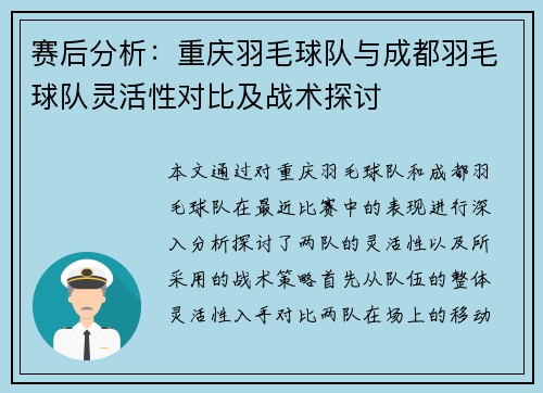 赛后分析:重庆羽毛球队与成都羽毛球队灵活性对比及战术探讨